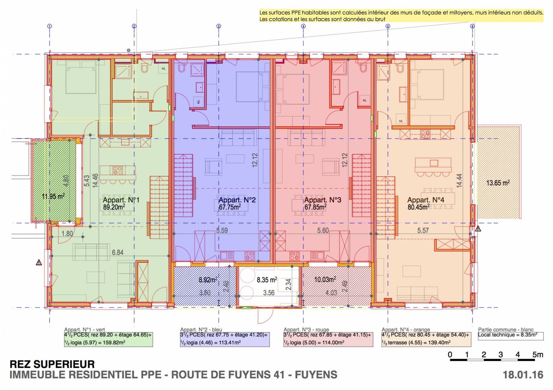 L'appartement bénéficie d'un réduit/cave sous le couvert à voiture proche de l'entrée de l'appartement. Dans le prix indiqué, une place de parc couverte à fr. 80.00 est comprise. Possibilité de louer une 2ème place de parc extérieure pour le prix de fr. 60.00.